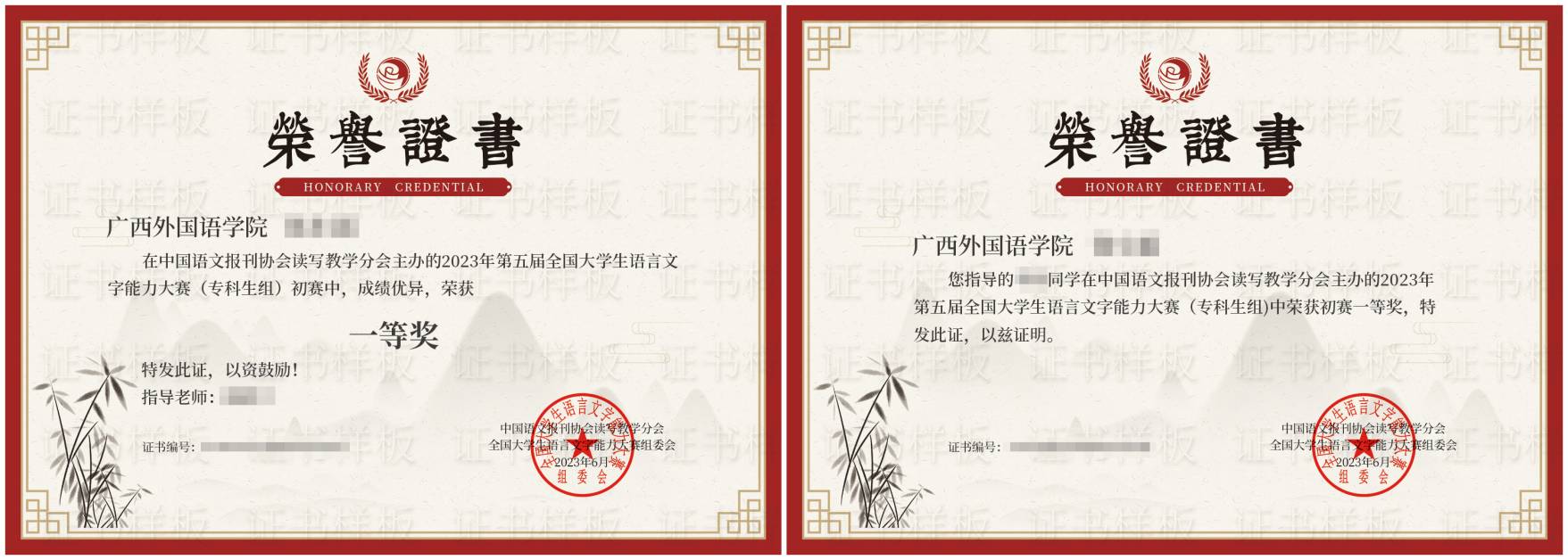 初赛师生同奖证书模板