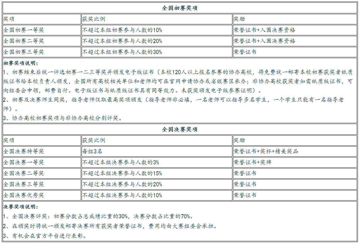 1、大赛还设置优秀指导老师奖、优秀组织奖、优胜学校等(详情点击查看官网协办单位征集)。