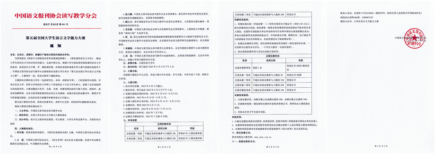 国赛】2023年第五届全国大学生语言文字能力大赛报名通知(已成功入选教育部认可的大学生竞赛榜单观察目录)