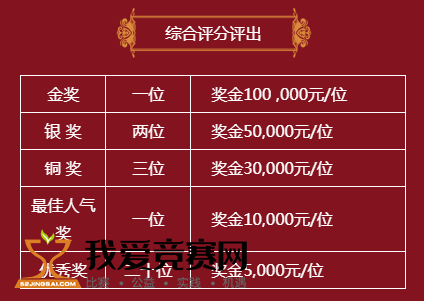 总奖金:2,000,000元 大赛遵循公开公平公正的原则,根据作品的创新型、示范性、引领性、完整性、社会价值、推广前景等重要因素进行评分。